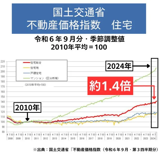 2010年と比べて約1.4倍、マンションに限っていえば約2倍です!
